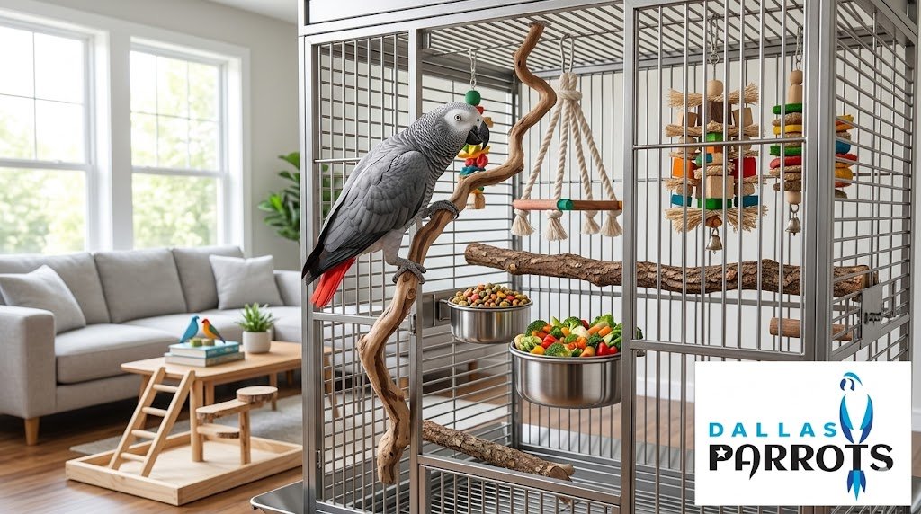 If you want a head start on picking the right setup our top parrot cage guide walks through size and bar spacing for different species. Bird toys aren’t optional for greys. A bored grey starts to pluck their feathers and once feather plucking starts it’s hard to reverse. Rotate toys weekly so the bird doesn’t get tired of the same options.